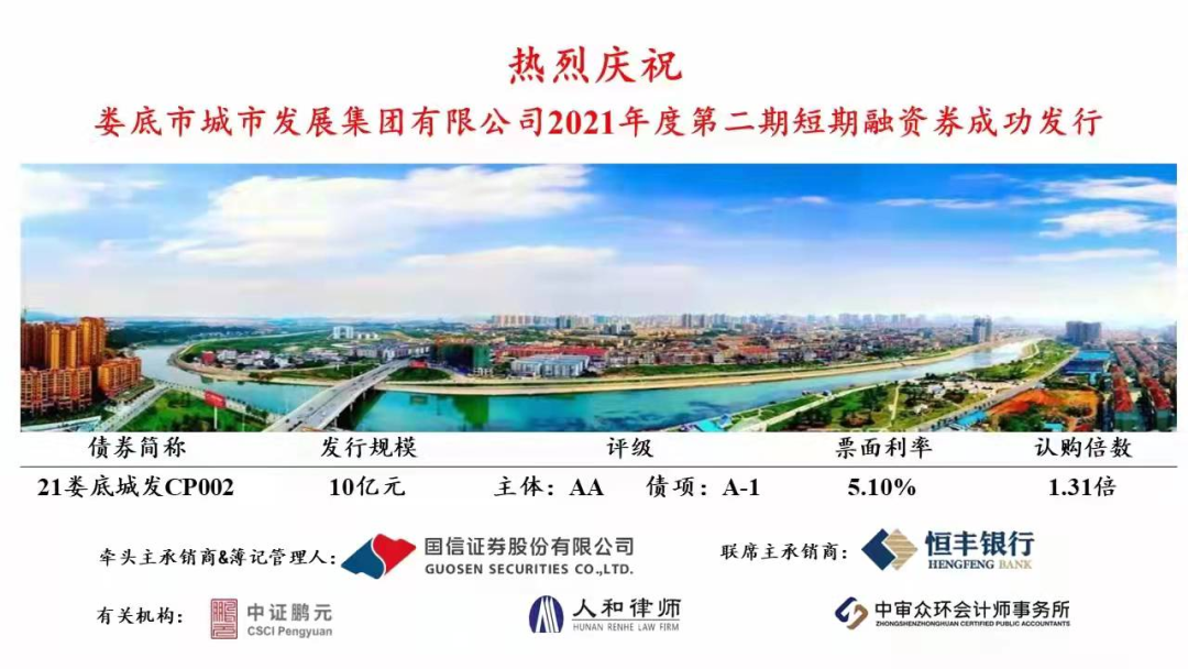 下一階段,市城發(fā)集團(tuán)將按照市委政府戰(zhàn)略部署,持續(xù)在資本市場探索多元化的直接融資工具,并充分積累和利用此次債券融資的經(jīng)驗,與投資者建立良好互動關(guān)系,多措并舉做好融資工作,為城發(fā)集團(tuán)轉(zhuǎn)型發(fā)展提供充足的資金保障,為婁底經(jīng)濟社會發(fā)展注入澎湃動力。
